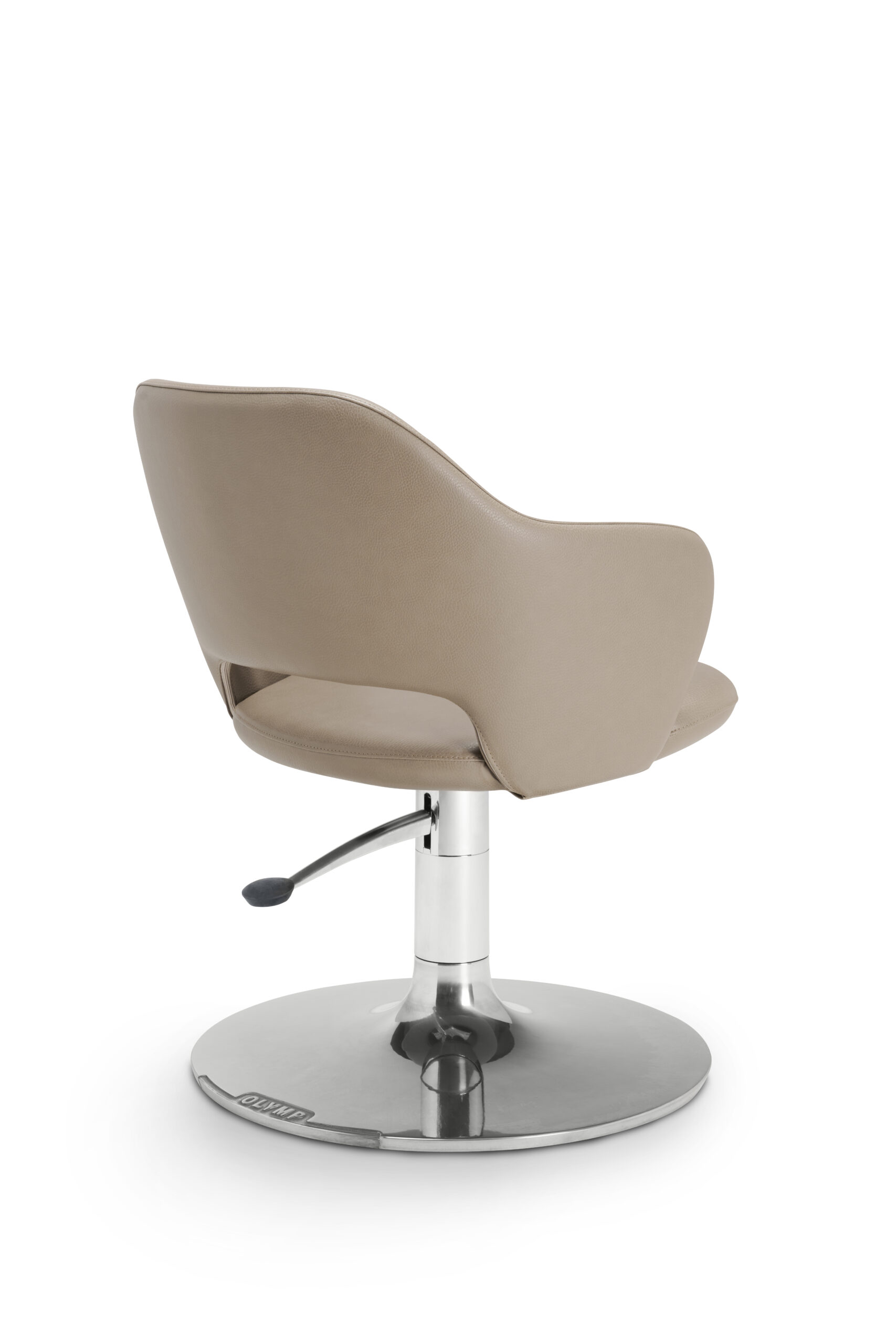 Lightweight armchair with gently curved backrest and integrated armrests. Inviting and modern look thanks to soft, organic lines. OLYMP Flair not only impresses with its aesthetic design, but also with its solid and durable construction. The high-quality material with comfortable foam padding is easy to care for and hard-wearing. The opening in the rigid backrest makes cleaning easy. An attractive and high-quality hairdressing chair for any salon interior.